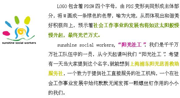 上海阳光慈善救助服务社(习惯简称“阳光”)于2003年11月11日在浦东新区民政局注册成立,是一家遵循社工理念,秉承社工职业守则,运用专业方法为个人、团体、社区提供直接服务的民办非企业单位。