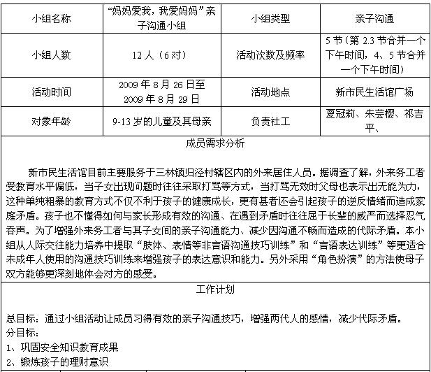 “妈妈爱我,我爱妈妈”亲子沟通小组活动计划书